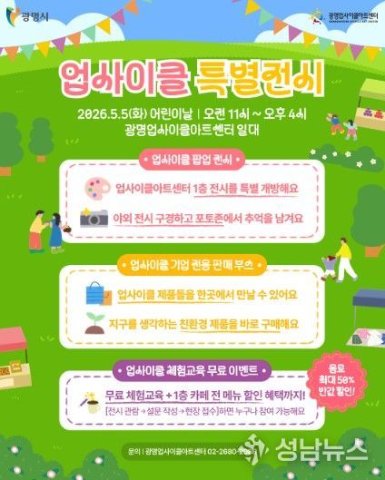 광명시 광명업사이클아트센터는 오는 5월 5일 어린이날을 맞아 자원순환 가치를 예술과 체험으로 즐기는 ‘업사이클 특별전시’를 운영한다.