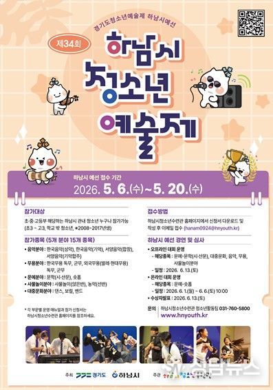 하남시가 주최하고 하남시청소년수련관이 주관하는 ‘2026 제34회 하남시청소년예술제’가 오는 6월 13일 하남시청소년수련관에서 개최된다.