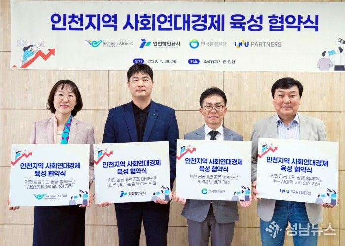 인천국제공항공사는 사회적 기업 등 인천지역 사회연대경제를 활성화하기 위해 인천소재 공공기관 및 인천대학교 창업지원단과 ‘인천지역 사회연대경제 육성을 위한 상호협력 업무협약’을 체결했다고 밝혔다.