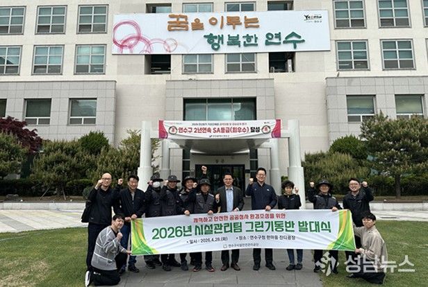 연수구시설안전관리공단은 4월 28일 연수구청 한마음 잔디광장에서 쾌적하고 안전한 공공청사 환경 조성을 위한 ‘2026년 시설관리팀 그린기동반 발대식’을 개최했다.