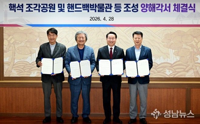 인천광역시는 4월 28일 인천시청 대접견실에서 조각가, ㈜시몬느, 블루코어PFV㈜와 ‘핵석 조각공원과 핸드백 박물관·핵석 전시관 조성’을 위한 양해각서를 체결했다.