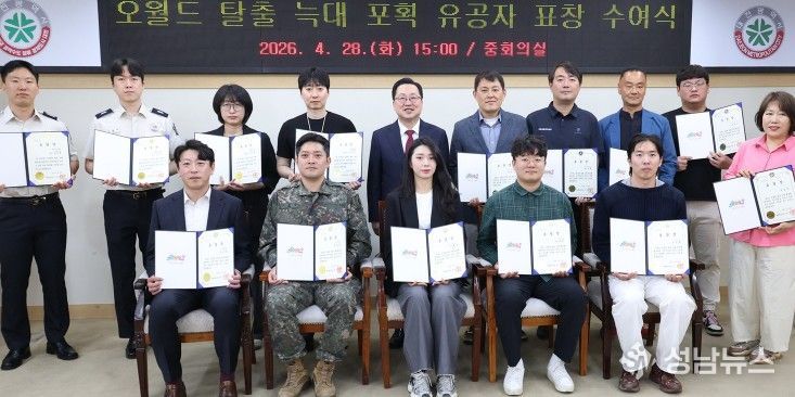 대전시는 4월 28일 오후 3시 시청 중회의실에서 대전오월드를 탈출한 늑대‘늑구’를 생포하는데 기여한 민간 유공자와 공무원 등 총 15명에게 표창을 수여했다.