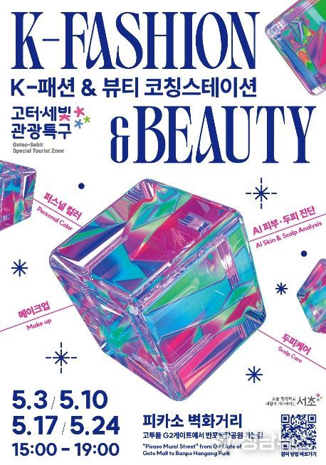 서울 서초구는 오는 5월 3일부터 24일까지 매주 일요일 15시~19시, 고속터미널역과 반포한강공원을 연결하는 지하 공공보행통로 ‘피카소 벽화거리’에서 ‘K-패션&뷰티 코칭스테이션’을 운영한다고 밝혔다.