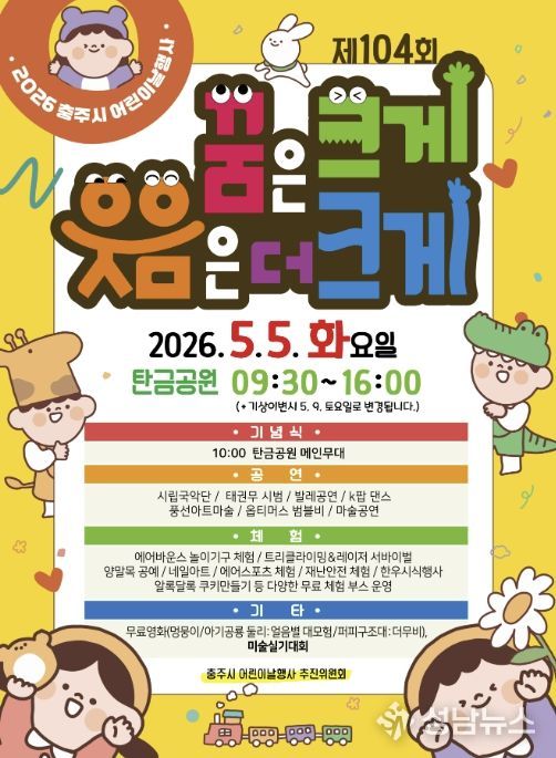 충주시는 오는 5월 5일 오전 9시 30분부터 탄금공원에서 ‘제104회 어린이날’을 기념하는 ‘2026 어린이날 행사’를 개최한다고 밝혔다.