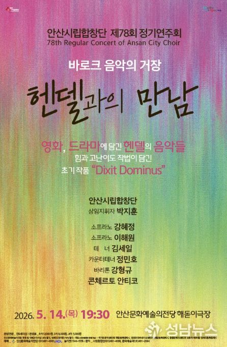 특히 공연의 하이라이트로는 헨델 초기 걸작인 ‘Dixit Dominus’가 무대에 오른다. 화려한 대위법과 빠른 전개, 장엄한 합창이 특징인 이 곡을 안산시립합창단의 탄탄한 앙상블로 만나볼 수 있을 것으로 기대된다.