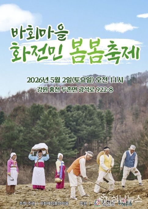 홍천 산골 마을에서 화전민의 삶과 봄의 식문화를 한자리에서 체험할 수 있는 ‘화전민 봄봄 축제’가 열린다. 홍천군 두촌면 바회 마을은 오는 5월 2일 오전 11시부터 마을 일원에서 주민 참여형 축제를 개최한다.