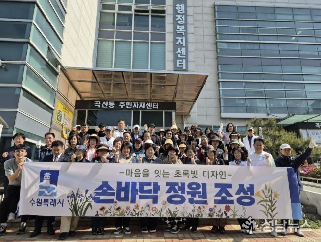 지난 27일, 수원시 권선구 곡선동 행정복지센터는 관할 내 손바닥 정원에서 지역 주민 및 유관 단체원들과 함께 ‘손바닥 정원 조성 행사’를 성황리에 개최했다.