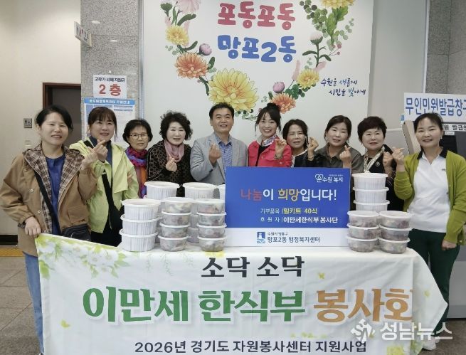 이용태 망포2동장은 “이웃을 위한 나눔을 실천해 주신 이만세 한식부 봉사회에 깊이 감사드린다”며 “앞으로도 민·관 협력을 통해 주민들이 체감할 수 있는 복지서비스를 확대해 나가겠다”고 밝혔다.
