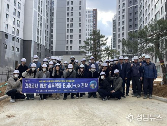 부천시는 지난 28일 건축업무 담당 공무원의 현장 대응력 향상을 위해 ‘건축공사 현장 실무역량 빌드업(Build-up) 견학’ 2차 과정으로 소사구 송내동 ‘송내역 푸르지오 센트비엔’ 마감공사 현장을 방문했다.