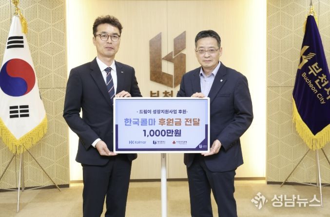 부천시는 지난 28일 한국콜마로부터 취약계층 아동 지원을 위한 후원금 1,000만 원을 전달받았다. 후원금 전달식에는 변성배 한국콜마 부천사업장 메이크업생산 그룹장과 남동경 부천시장 권한대행이 참석해 민관 협력의 의미를 더했다.