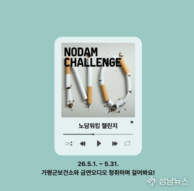 가평군보건소가 ‘세계 금연의 날’을 앞두고 5월 1일부터 한 달간 금연 인식 확산을 위한 ‘노담워킹 챌린지’를 진행한다. 이번 행사는 일상 속 걷기 실천과 금연 홍보를 병행해 군민들의 건강한 생활 습관 형성을 돕고자 마련됐다.