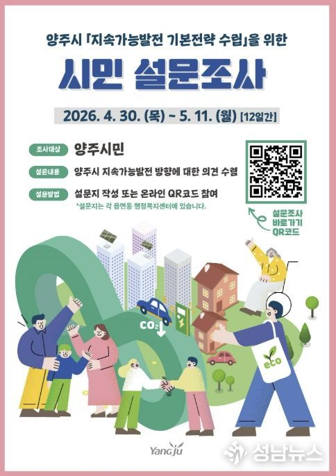 양주시는 ‘지속가능발전 기본전략 및 추진계획’ 수립을 위해 시민 의견을 수렴하는 설문조사를 실시한다.