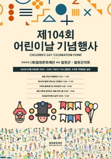 (재)철원문화재단은 오는 5월 5일 어린이날을 맞아 고석정 일원에서 ‘제104회 어린이날 기념행사’를 개최한다고 밝혔다.