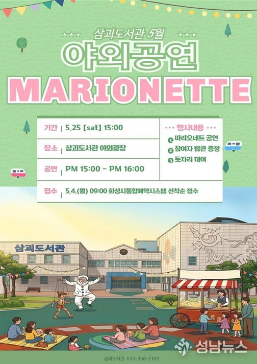 접수는 5월 4일부터 화성시 통합예약시스템을 통해 선착순 150명까지 진행되며, 일부 프로그램은 당일 현장 참여도 가능하다. 자세한 사항은 화성시 통합예약시스템 또는 삼괴도서관으로 문의하면 된다.