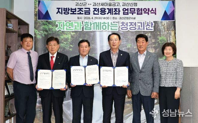 충북 괴산군은 괴산군청 군수실에서 지역 내 괴산새마을금고, 괴산신협 등 2개 금융기관과 지방보조금 전용계좌 개설을 위한 업무협약을 체결했다고 29일 밝혔다.