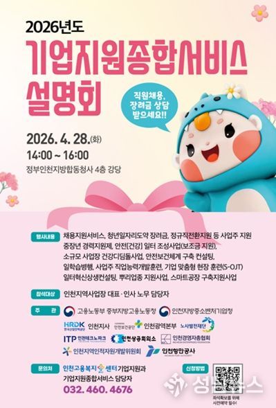 중부지방고용노동청은 인천지방중소벤처기업청 등 유관기관과 함께 4월 28일 오후 2시 정부인천지방합동청사에서 ‘기업지원 종합서비스’ 설명회를 개최했다.