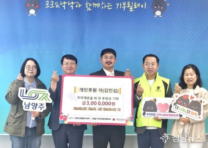 남양주시는 29일 진접오남행정복지센터에서 김민섭씨가 취약계층 지원을 위해 후원금 300만 원을 전달했다고 밝혔다.