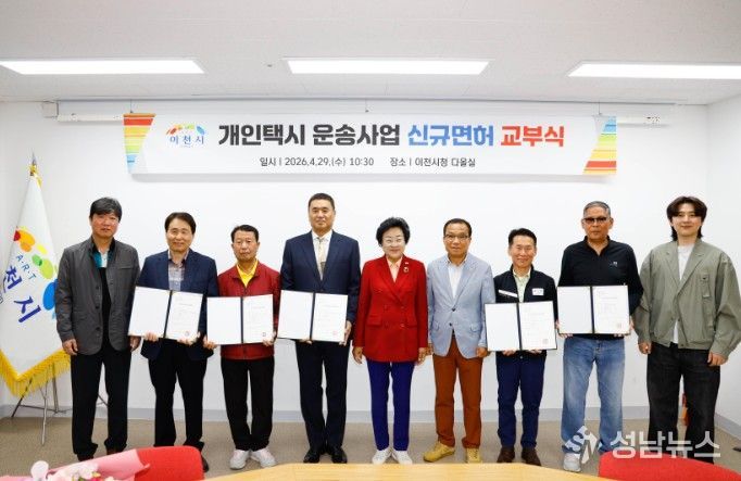 이천시는 29일 시청 다올실에서 개인택시운송사업 신규 면허증 교부식을 개최하고, 심사를 통해 최종 선정된 5명의 대상자에게 면허증을 전달했다고 밝혔다.