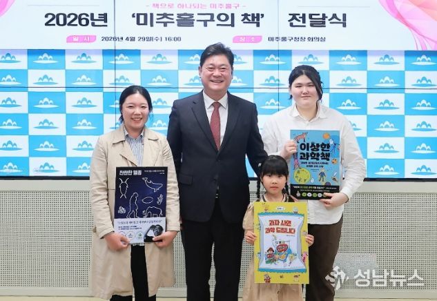 인천 미추홀구는 29일 구청 구청장실에서 ‘한 도시 한 책 독서 릴레이’ 첫 주자에게 2026년 ‘미추홀구의 책’ 전달식을 완료했다.