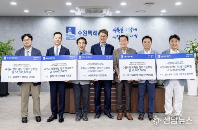 수원시 5개 기업·단체가 “지역인재 양성에 사용해 달라”며 수원시장학재단에 장학기금 총 4500만 원을 기탁했다.