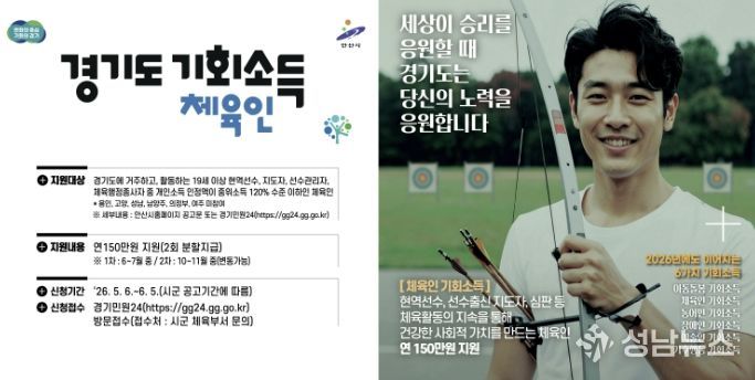 신청 대상은 공고일 기준인 2026년 5월 6일 현재 안산시에 주민등록을 둔 19세 이상 체육인이다. 2007년 12월 31일 이전 출생자여야 하며, 기준 중위소득 120% 수준 이하인 경우 신청할 수 있다.
