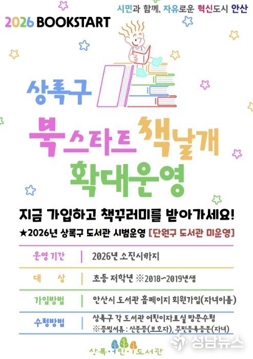 안산시는 상록구 소재 도서관에서 운영 중인 ‘북스타트 사업’ 대상을 기존 영유아에서 초등학교 저학년 학생까지로 확대한다고 30일 밝혔다.