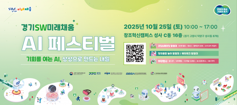 경기도는 과학기술정보통신부, 정보통신산업진흥원과 함께 오는 25일 고양 창조혁신캠퍼스에서 ‘기회를 여는 AI, 상상으로 만드는 내일’을 주제로 ‘2025 경기SW미래채움 AI 페스티벌’을 개최한다.