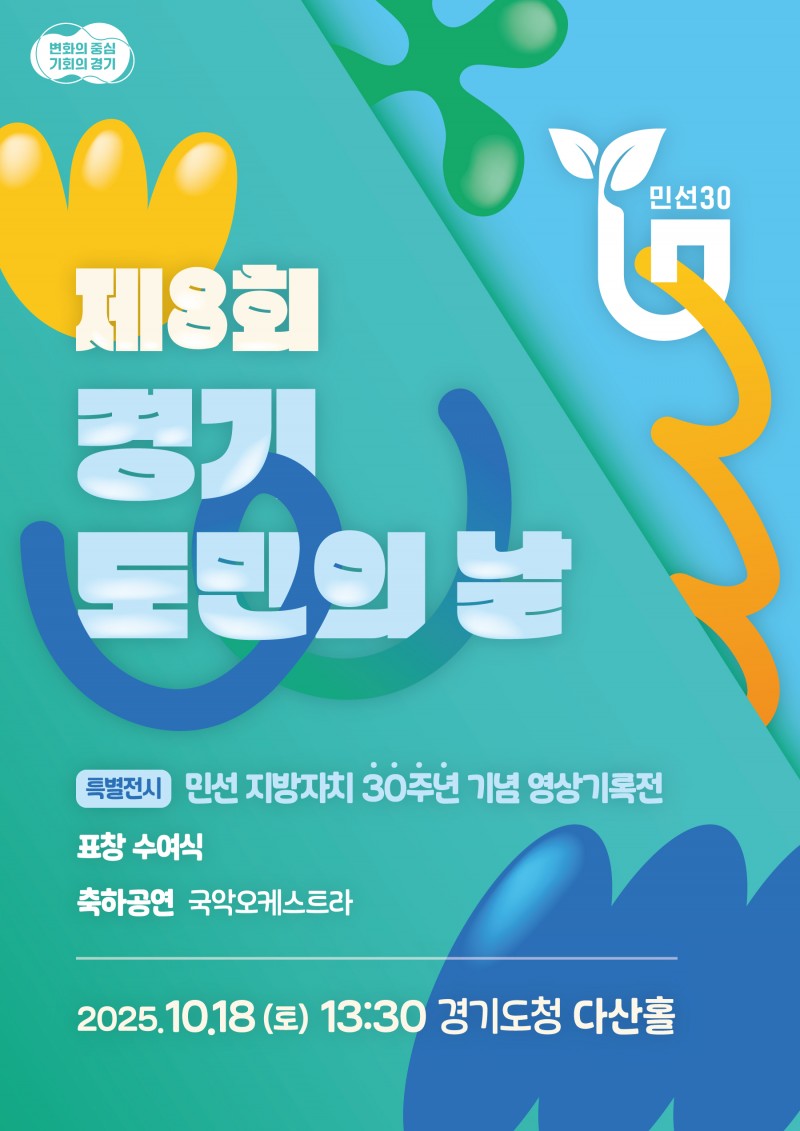 경기도는 오는 18일 제8회 경기도민의 날을 맞아 경기도 광교청사 1층 다산홀에서 도민과 함께하는 이·통장 아카데미, 민선 지방자치 30주년 영상기록전 등 기념행사를 개최한다.