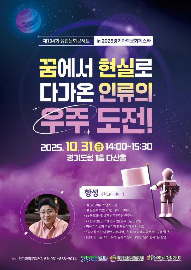 경기도와 차세대융합기술연구원은 10월 31일부터 11월 1일까지 이틀간 경기도청 도담뜰에서 ‘2025 경기과학문화페스타’를 개최한다.