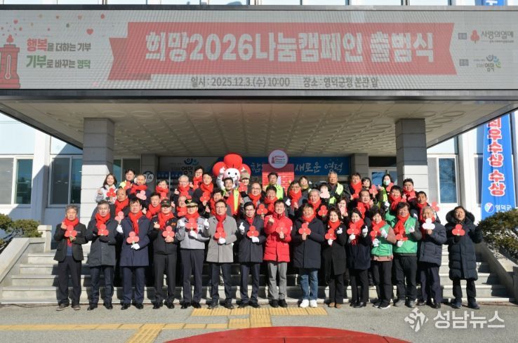 성남뉴스 기자 | 영덕군은 지난해 12월 1일부터 올해 1월 31일까지 진행한 ‘희망2026 나눔 캠페인’에 당초 목표한 3억 600만 원을 150% 달성한 4억 8,000만 원을 모금해 62일간 이뤄진 나눔의 행복을 성공적으로 마무리했다.