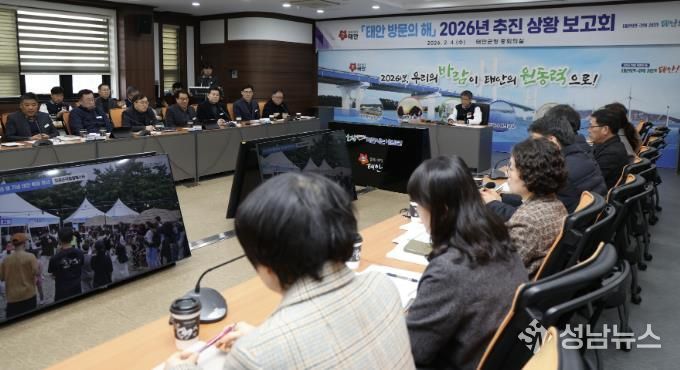 군은 지난 4일 군청 중회의실에서 부군수와 실·국장, 전 부서장 및 읍·면장 등 39명이 참석한 가운데 ‘2026 태안 방문의 해 추진상황 보고회’를 개최했다.