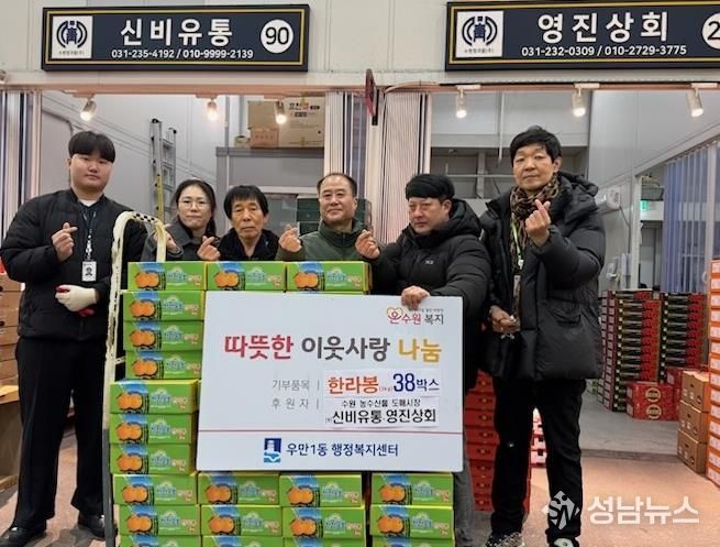 성남뉴스 관리자 기자 | 수원 농수산물도매시장 내 신비유통‧영진상회에서 설 명절을 앞두고 우만동 이웃들에게 따뜻한 정을 전했다고 밝혔다.