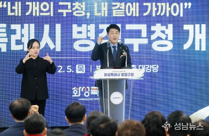 성남뉴스 관리자 기자 | 화성특례시의회는 5일 진안동 소재 병점구청(구 동부출장소)에서 열린 '화성특례시 병점구청 개청식'에 참석해, 시민 중심 행정의 새로운 출발을 함께 축하했다.