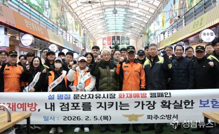 성남뉴스 관리자 기자 | 파주소방서는 2월 5일 설 명절을 앞두고 파주시 문산자유시장에서 화재예방 캠페인과 상인 간담회, 합동점검을 실시하며 지역 전통시장 화재예방에 총력을 기울였다.