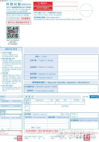 성남뉴스 관리자 기자 | 이천시는 맞춤형 세무 행정 실현과 다문화 포용 정책 추진사업의 일환으로 경기도 최초 외국인 대상 다국어(영어·중국어·베트남어) 세외수입 체납고지서를 발송하고, 언어장벽으로 인한 세무 행정 사각지대 해소에 나선다고 밝혔다.