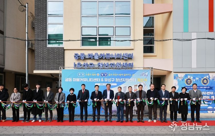 성남뉴스 관리자 기자 | 대전 유성구는 지역 주민 소통 활성화와 청년 활동 지원을 위한 ‘궁동 마을커뮤니티센터&유성구 청년지원센터’를 조성하고 5일 개소식을 개최했다.