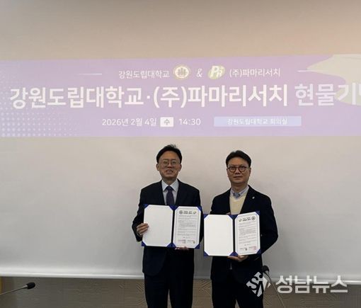 성남뉴스 관리자 기자 | 강원도립대학교와 재생의학 기반 바이오 제약 기업인 ㈜파마리서치(대표이사 손지훈)가 지역 혁신 성장을 주도할 전문 인재 양성을 위해 손을 잡았다.