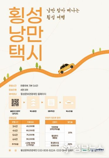 한편, 낭만택시 이용 방법과 상세한 할인 일정은 향후 횡성문화관광재단 누리집(홈페이지)을 통해 공지될 예정이다.