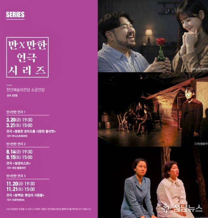 성남뉴스 관리자 기자 | 천안문화재단이 오는 10일부터 천안예술의전당 기획공연 ‘만X만한 연극 시리즈’의 티켓 예매를 시작한다.