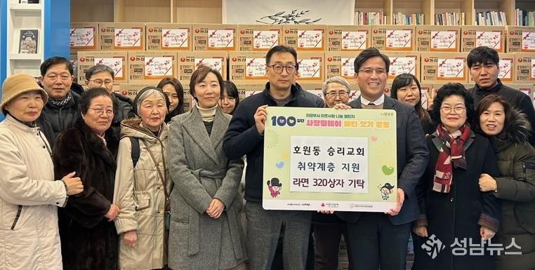 성남뉴스 관리자 기자 | 의정부시 호원2동주민센터는 2월 4일 호원동에 위치한 승리교회가 설 명절을 맞아 관내 취약계층을 위해 라면 320상자를 기탁했다고 밝혔다.