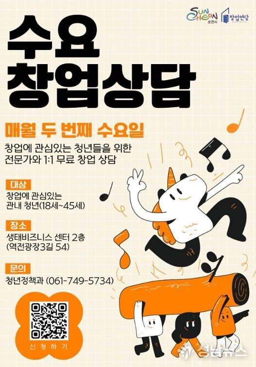 성남뉴스 관리자 기자 | 순천시가 창업에 어려움을 겪는 청년 창업자와 예비 창업자를 대상으로 '2026년 수요창업상담'을 연중 운영한다.