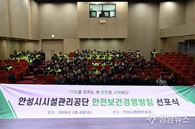 성남뉴스 관리자 기자 | 안성시시설관리공단은 지난 2월 4일, 종사자와 시민의 생명 보호 및 안전한 시설 운영을 위한 ‘2026년 안전보건경영방침 선포식’을 개최했다고 밝혔다.