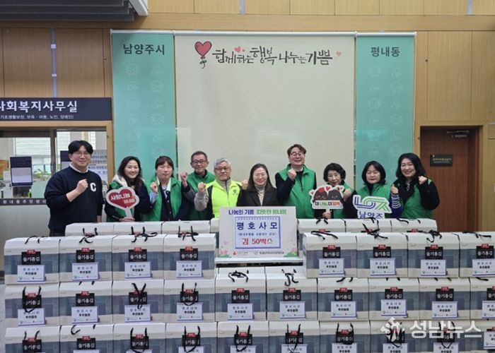 성남뉴스 관리자 기자 | 남양주시는 지난 5일 평내호평을 사랑하는 모임이 설 명절을 맞아 김 선물세트 50박스를 평내동 지역사회보장협의체에 기탁했다고 6일 밝혔다.