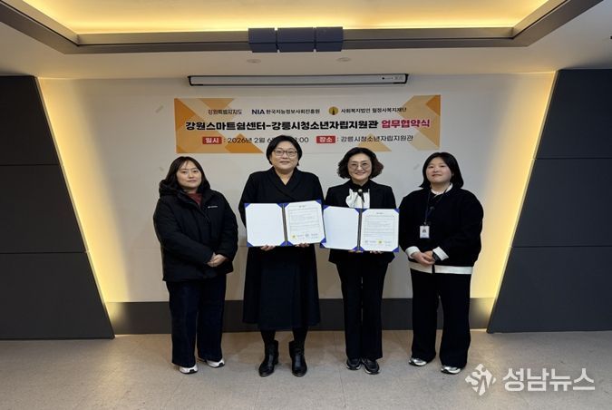 성남뉴스 관리자 기자 | 강원특별자치도 강원스마트쉼센터는 지난 2월 6일 오전 11시 강릉시청소년자립지원관과 지역사회 위기 청소년의 예방과 건강한 성장 지원을 위한 업무협약을 체결했다고 밝혔다.