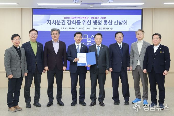 광주광역시구청장협의회는 8일 광주 동구청에서 대전광역시 중구청장·유성구청장과 함께 신정훈 국회 행정안전위원장과 간담회를 갖고, 광역 행정통합 추진 방향과 관련해 자치구의 자치권이 실질적으로 보장될 수 있도록 통합특별법에 반영해 줄 것을 건의했다고 밝혔다.