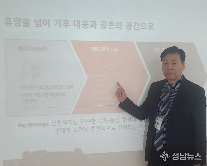 행정안전부 등 38개 기관이 공동주최한 학술대회에서 양세훈 센터장은 산림복지를 단순한 복지·관광 정책이 아닌 기후위기 대응과 생태계 보전을 통합적으로 실현하는 핵심 환경정책으로 재정립 할 것을 강조했다.