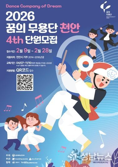 (성남뉴스) 천안문화재단이 지역 아동의 예술적 감수성과 협업 역량을 키우는 ‘2026 꿈의 무용단 천안’ 단원을 9일부터 28일까지 모집한다.