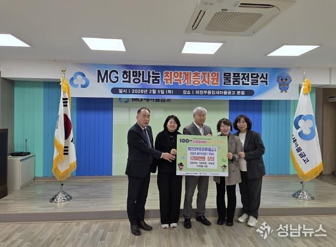 (성남뉴스) 의정부시 의정부1동주민센터는 2월 5일 의정부중앙새마을금고가 본점(시민로 53) 대강당에서 지역사회 취약계층 지원을 위한 총 1천250만 원 상당 후원물품 전달식을 개최했다고 밝혔다.