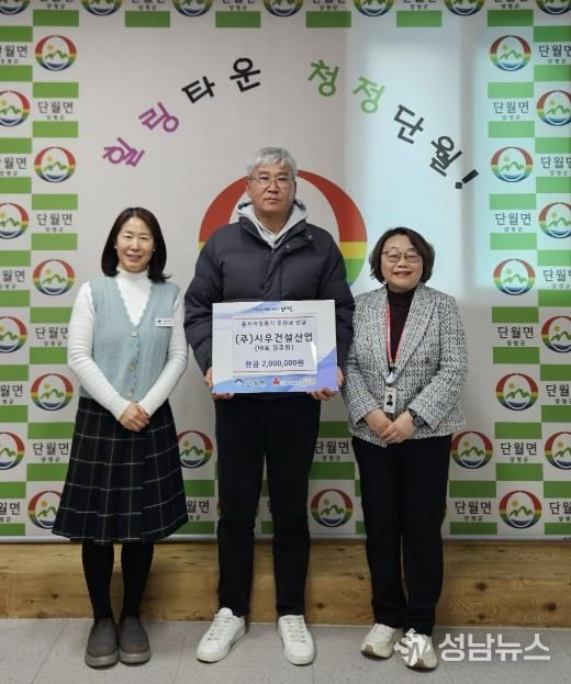 (성남뉴스) 양평군 단월면은 ㈜시우건설산업이 지난 5일 어려운 이웃을 돕기 위해 성금 200만 원을 단월면에 기탁한 데 이어, 지난 6일에는 수미우렁농장도 성금 100만 원을 기탁했다고 밝혔다.