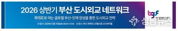 (성남뉴스) 부산글로벌도시재단은 지역 혁신과 글로벌 협력을 연계한 도시외교 협력 플랫폼 구축을 위해 2월 10일, 호메르스호텔에서 '2026 상반기 부산 도시외교 네트워크'를 개최한다고 밝혔다.